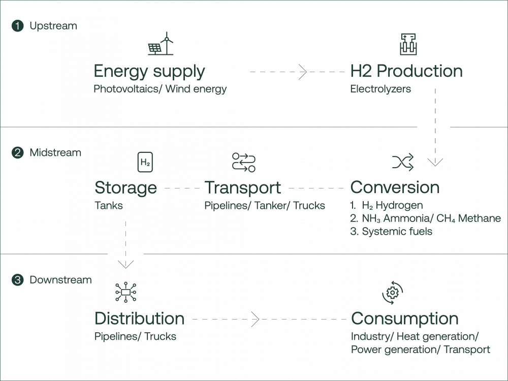 With conversion technologies, renewable electricity is not only used for the power grid but is also integrated into other sectors such as heating, transportation, and industry. This connection, known as sector coupling, creates synergies: energy surpluses can be utilized in various ways, such as heating buildings, powering electric vehicles, or supplying industrial facilities. The result is a more efficient and future-oriented use of renewable energy.